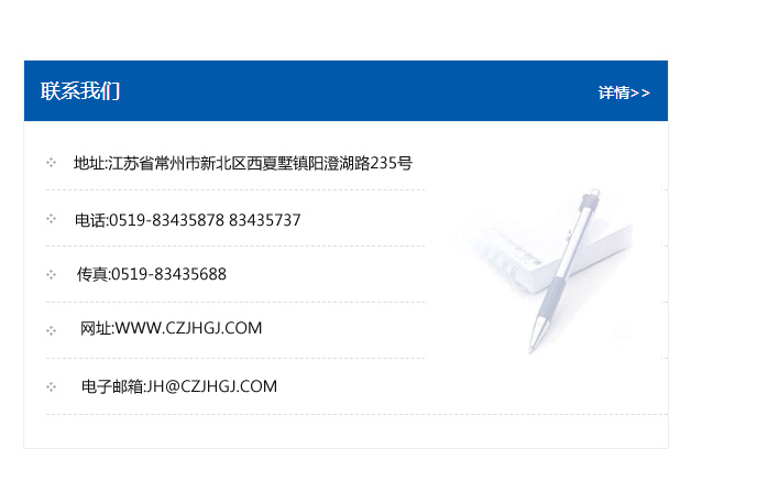 地址:常州市新北區友邦商務大廈1幢16、17層  電話:0519-85101652  傳真:0519-85112595  郵編:213022  網址:www_cz-jiayue_cn.powerprofitchina.com  郵箱:xiajifengaa@163.com